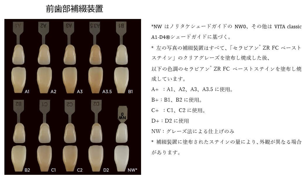 前歯部補綴装置ではグレーズ法による仕上げやステインを行うことをお勧めします。